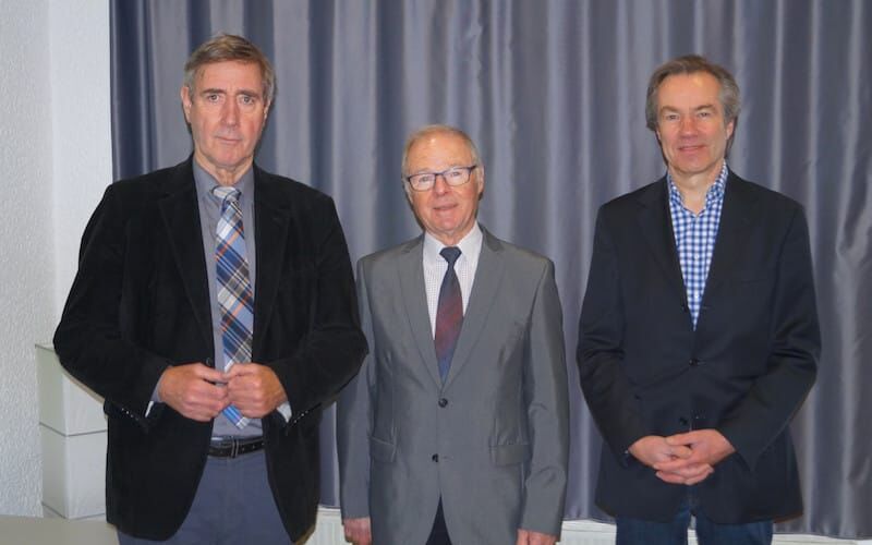 Auf persönliche Geschenke zu seinem 80. Geburtstag verzichtete Georg Kuropka (Mitte) aus Pulheim. Statt dessen bat er die Gäste seiner Geburtstagsfeier um eine Spende für Hospiz Pulheim. Im Ergebnis kam bei dieser Spenden-Aktion ein ansehnlicher Betrag zusammen, den Georg Kuropka am 7. Dezember 2016 dem Vereinsvorstand überreichen konnte. Vorsitzender Dr. Wolfgang Lerch (rechts) und stellvertretender Vorsitzender Karl Heinz Bossier dankten Kuropka herzlich für seine vorbildliche Initiative und versicherten, die Spende werde der Arbeit des Vereins für Menschen in ihrer letzten Lebensphase und für Trauernde zugute kommen.