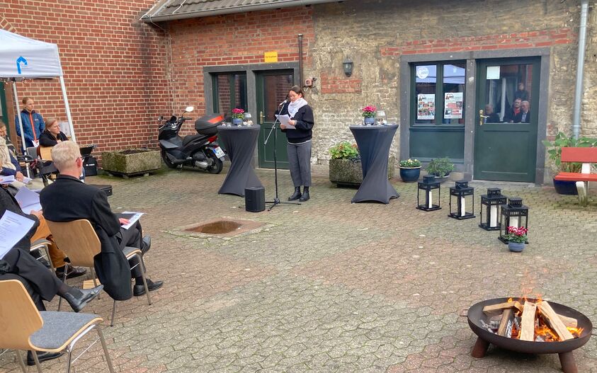 Die Vorbereitung lag darüber hinaus in den Händen der beiden Koordinatorinnen Petra Schenzler und Michaela Weber. Die musikalische Begleitung übernahm Astrid Bank-Mörs mit ihrer Gitarre. Zum Zeichen des Gedenkens übergaben Familienangehörige zum Schluß ein Blatt Papier mit ihren Gedanken zu den Verstorbenen dem Feuer in einer Feuerschale.