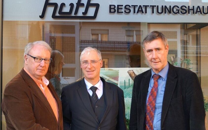 Ein herzliches „Dankeschön“ des Pulheimer Hospizvereins überbrachten Vorsitzender Werner Weiland und stellvertretender Vorsitzender Karl Heinz Bossier dem Geschäftsführer des Bestattungshauses Huth, Thomas Huth aus Sinnersdorf. Schon seit vielen Jahren unterstützt Thomas Huth die Arbeit des Vereins: sei es als Referent in Veranstaltungen zur Bestattungskultur, sei es durch den Aushang der Informationen von Hospiz Pulheim e.V. oder durch den Hinweis auf Trauerspenden, um die immer mehr Angehörige anstelle von Kränzen und Blumen bitten. Weiland und Bossier betonten, wie wertvoll solche Spenden gerade für die Ausbildung der ehrenamtlichen Begleiterinnen und Begleiter und die professionelle Betreuung der Hospizarbeit seien.