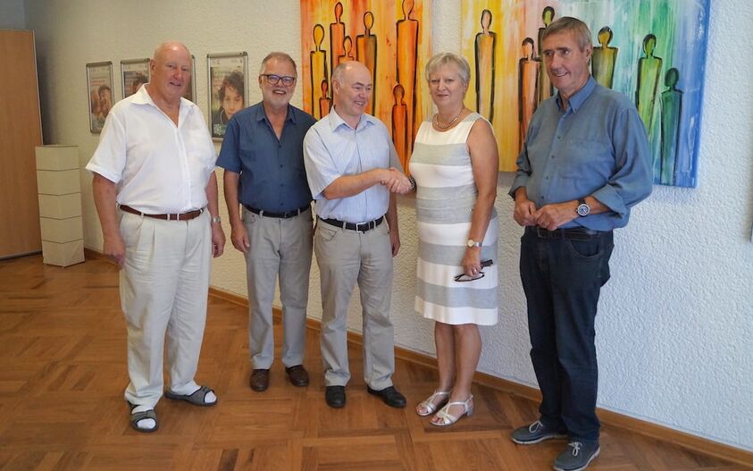 Die Ergebnisse aller Spiele der diesjährigen Fußball-Weltmeisterschaft tippten die Mitglieder einer kleinen privaten Runde aus Pulheim. Das beste Fußball-Gespür hatte dabei Siegfried Theisen, der am Ende ganz vorn lag. Gemeinsam mit Dieter Moritz entwickelte er die Idee, das Preisgeld an Hospiz Pulheim zu spenden. Am 22. August 2018 kamen Siegfried Theisen (auf dem Foto 3. von links) und Dieter Moritz (2. von links) mit den Vorstandsmitgliedern Elisabeth Rehmann, Karl Heinz Bossier (rechts) und Werner Weiland (links) zusammen. Die Hospiz-Vorstände nutzten die Gelegenheit, den beiden Initiatoren herzlich für ihre originelle Spenden-Idee zu danken.
